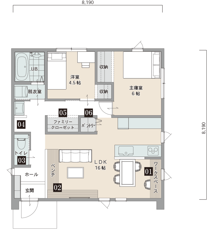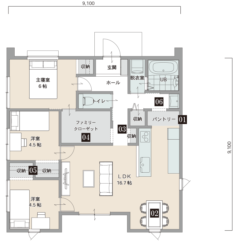 設計士がプロの視点でとことん”暮らしやすさ”を追求したプランをご用意。ご家族の理想の住まい方に合わせてお選びいただけます。