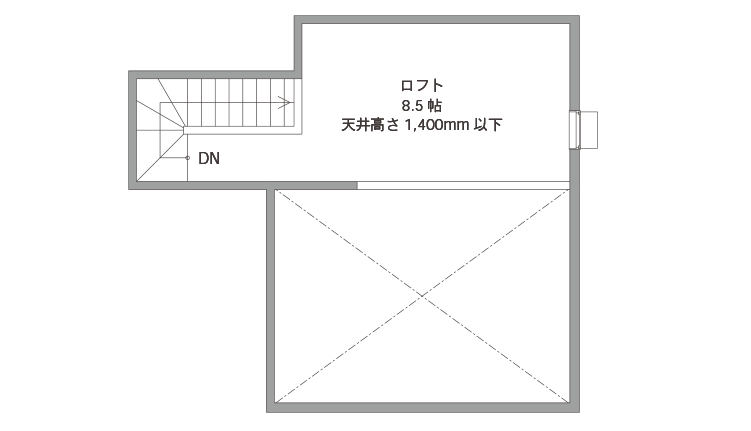 扉のない、フリーで使える収納スペースを設えています。デスクなどの設置にも便利に使えます。