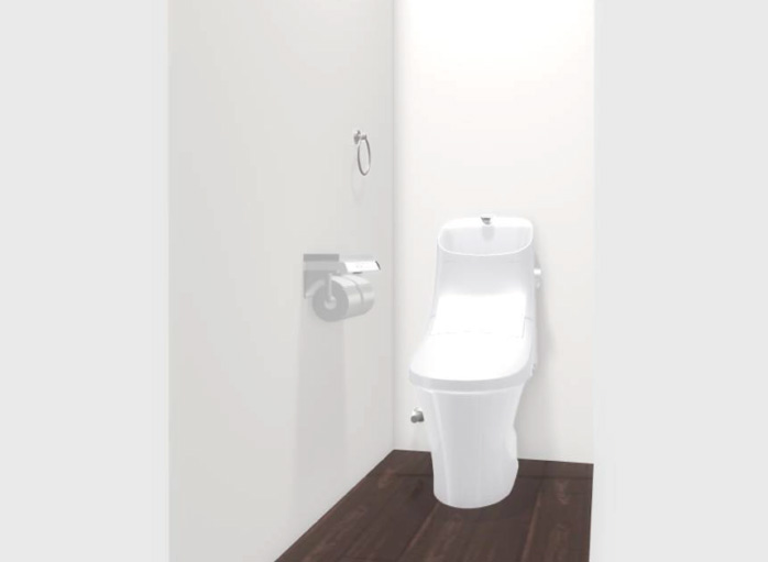 玄関からアクセスの良い場所にトイレを設置。庭にいる時など、すぐに使えて便利です。