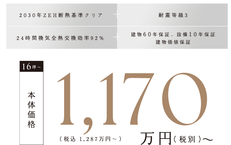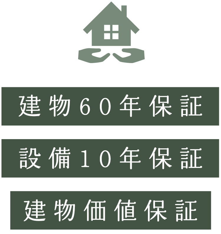 家の価値を維持し、永く住み続けられる住まいのため、建物は最長60年の長期保証。設備はメーカー保証後も最長10年間を保証。また、建物価値を適正に評価する建物価値保証も備えています。